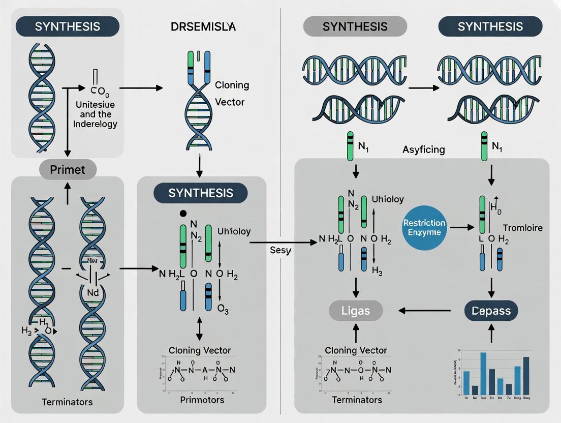 The integration of advanced DNA synthesis and assembly technologies is revolutionizing plant synthetic biology, enabling the precise engineering of plants as biofactories for therapeutic compounds. The progression from foundational design principles to optimized, validated methodologies underscores a shift towards more predictable and scalable plant bioengineering. The convergence of high-fidelity DNA assembly with targeted delivery and expression optimization directly addresses key challenges in biopharmaceutical production, such as scalability and cost. Future directions point toward fully automated design-build-test-learn cycles, the creation of plant chassis with minimal metabolic burden, and the direct clinical translation of plant-derived biologics. For biomedical researchers, this represents a powerful, sustainable platform for producing complex molecules, with profound implications for personalized medicine, rapid response to pandemics via plant-based vaccine platforms, and the development of novel treatment modalities.