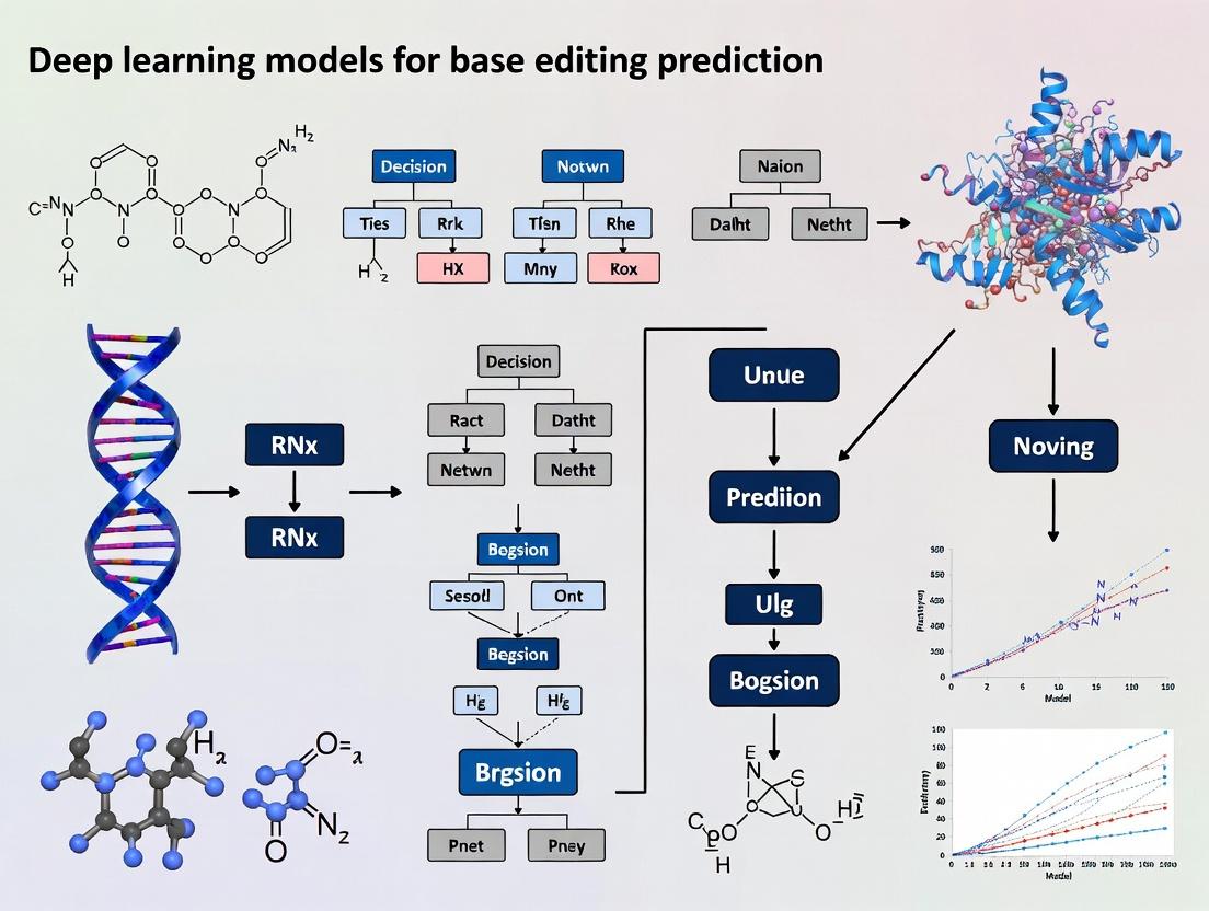 Deep learning models for base editing prediction have matured from conceptual frameworks to essential in silico tools that dramatically accelerate the design and optimization of precise genome edits. By addressing the foundational complexity, providing actionable methodologies, outlining optimization strategies, and establishing rigorous validation benchmarks, these models are reducing the costly trial-and-error of experimental work. The key takeaway is that predictive accuracy is continually improving through better architectures, more diverse training data, and active learning loops with experimentation. Future directions must focus on integrating cellular context—such as chromatin accessibility, transcriptional state, and nuclear localization—into multi-modal models, ultimately moving towards a fully predictive digital twin for genome editing. This progress promises to de-risk therapeutic development, personalize editing strategies, and unlock the full clinical potential of CRISPR base editing technologies.