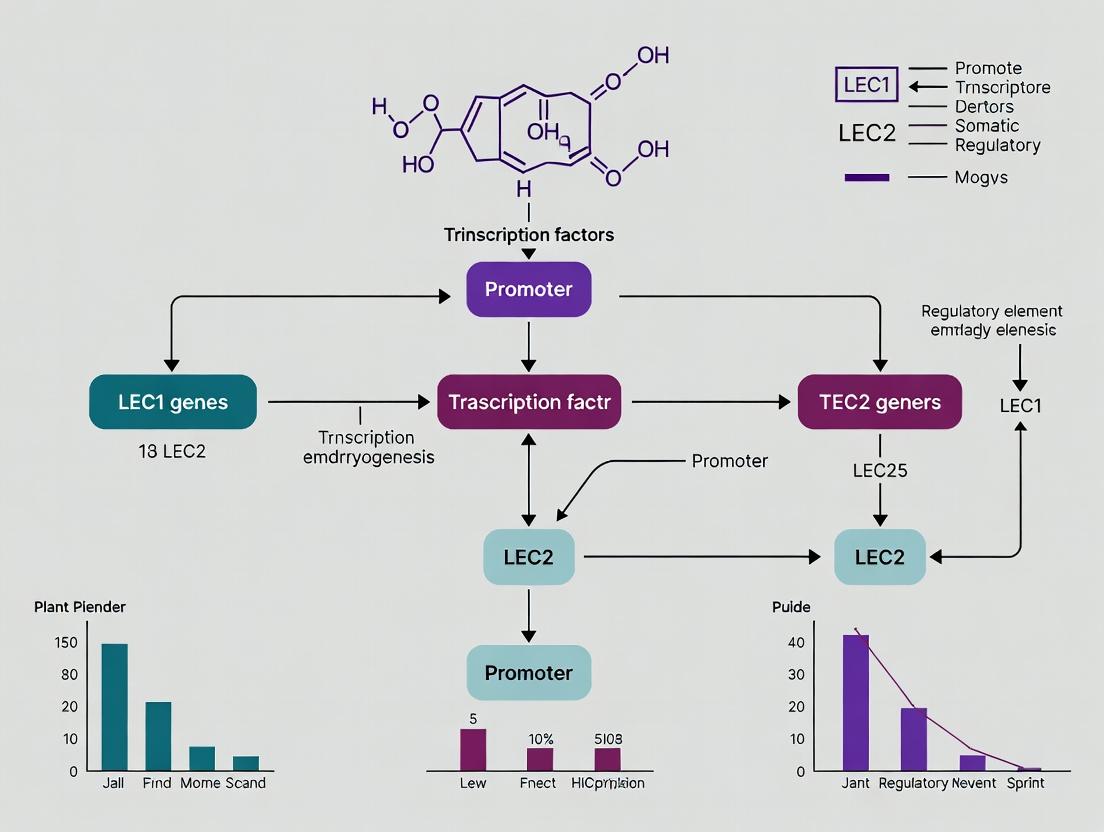 Mapping the LEC genes within the integrated pluripotency network reveals a complex, multi-layered regulatory hub central to somatic embryogenesis. This hub integrates hormonal, stress, and developmental signals to enact a coherent reprogramming output. The experimental frameworks and tools detailed herein provide a roadmap for researchers to further dissect this network. A systems-level understanding of the SE Hub will not only refine plant cloning and synthetic seed technologies but also offer comparative insights into the principles of cellular reprogramming across kingdoms, with potential implications for regenerative medicine and therapeutic development.